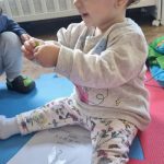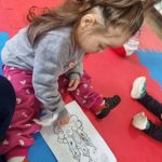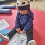 Vamos pintar o castelo primeiro com giz jumbo, usar o tato novamente ao sentir o algodão, explorar a cola, e deixar que colem ao seu tempo, auxiliando no que precisar!