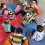 Após, espalhar feijões para que sintam a textura, com grupos divididos para evitar que coloquem na boca, e se consiga ter um controle.