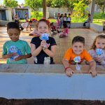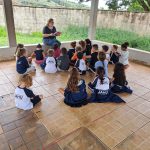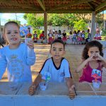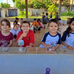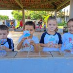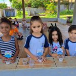 Aproveitando o conteúdo do livro didático, o Jardim 2 participou de uma roda de leitura com a história de “João e o pé de feijão”. Após este primeiro momento, a turma refletiu sobre os cuidados com o plantio de sementes e sobre a importância de se cuidar do meio ambiente. Ao final, os alunos plantaram mudas de feijão, que foram levadas para casa e cuidadas pelas crianças até que as folhagens ultrapassassem o “castelo” do gigante (plaquinha fincada junto com a semente).