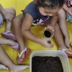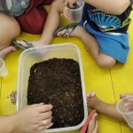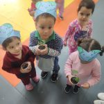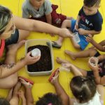 Os alunos do maternal 1 da professora Edna realizaram uma atividade na prática com o plantio de feijões. No primeiro momento a professora repertoriou os pequenos sobre a importância de plantar árvores e produzir uma horta, tanto em casa como nos espaços da unidade escolar. Após esse momento os estudantes tiveram a oportunidade de colocar a mão na massa (barro), e com uso dos copinhos descartáveis os mesmos realizaram o plantio das sementinhas de feijão.