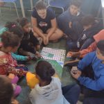 A professora Renata Inocêncio, distribuiu, o material, para as criança jogarem.