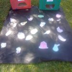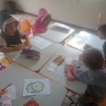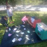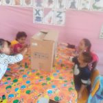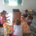 A professora confeccionou com seus alunos um joguinho da alimentação. juntamente com os alunos a professora pintou duas caixas de papelão com as cores VERMELHO e VERDE.