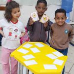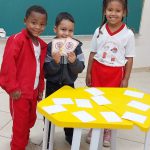 Os alunos participaram da atividade lúdica utilizando jogo da memória com placas de trânsito, aprendendo o significado de algumas placas como Pare, Proibido Estacionar, Faixa de Pedestre, Atenção Escola, entre outras. Durante a atividade, os alunos se organizaram em pequenos grupos e, de forma colaborativa, procuraram encontrar os pares das cartas e a cada acerto, os alunos comemoravam , demonstrando envolvimento, entusiasmo e interesse.