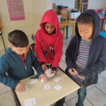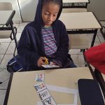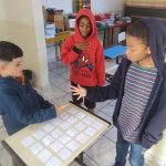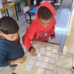 - Jogo da memória: utilizando a tesoura, os alunos recortaram as cartas do jogo de forma que ficassem do mesmo tamanho. As cartas foram embaralhadas e dispostas de forma organizada com as imagens voltas para baixo na mesa, dando início à partida. Eles se revezaram, virando duas cartas por vez e o vencedor foi aquele que obteve o maior número de pares de cartas.