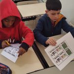 - Discussão em grupo: os alunos analisaram cada peça do jogo da memória, debatendo sobre a importância de respeitar as sinalizações, atravessar a rua na faixa de pedestre, utilizar cinto de segurança nos veículos e capacetes nas motocicletas, sempre mantendo a atenção e o respeito.