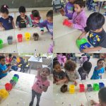 Nessa atividade, as crianças exploraram um jogo muito divertido com as lixeiras da reciclagem, aprendendo as suas cores, além de poderem pegar as fichinhas de tipos de lixo e jogar na lixeira correta.