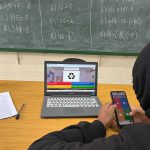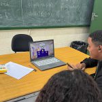Após uma roda de conversa com os alunos do 9°C sobre as temáticas ambientais, destacando principalmente a importância da reciclagem, os estudantes participaram de uma atividade de gameficação utilizando a plataforma Kahoot, em uma disputa de perguntas e respostas relacionada a discussão da roda de conversa.