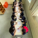 Enquanto jogavam, as crianças puderam revisar os significados das placas e regras de trânsito, de forma lúdica e descontraída. A cada rodada, surgiam comentários e trocas de ideias sobre como cada sinal é importante para garantir a segurança de pedestres e motoristas.