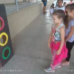 Assim, as crianças da Educação Infantil utilizaram o semáforo gigante que foi construído para trabalhar o jogo das cores e ainda a figura geométrica círculo.