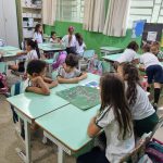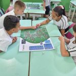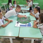 Os alunos do primeiro ano realizaram uma atividade com os jogos enviados pela arteris. O jogo de trilha trabalha com as crianças as sinalizações, o mapa do jogo traz os nomes das cidades da região, e as cartas trazem situações que podem ocorrer no trânsito, sejam elas boas situações ou infrações, conscientizando sobre as atitudes corretas e pontuando as graves com perca de pontos no jogo.