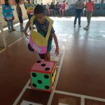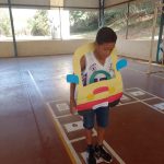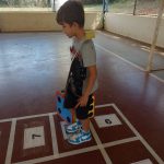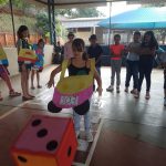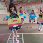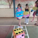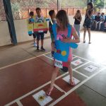 Desenvolvimento: num momento anterior, os alunos construíram um jogo de trilha com as regras de trânsito que acharam mais pertinentes. Dois participantes por vez joga o dado e avançava as casas, observando as informações contidas na casa em que parou (contido ali as regras de trânsito) e pode avançar, permanecer ou voltar casas. Vence o jogo que primeiro chegar à última casa.