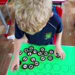 Jogo realizado com os alunos do 1°ano B, Escola Municipal Bom Jesus, Mandirituba, turma com 22 alunos, período da manhã. Toda sexta-feira separamos uma parte da aula para a realização de jogos. Essas alternativas são construídas com materiais que seriam abandonados no lixo. Utilizando círculos de madeira, descartado das fábricas de móveis, criamos o jogo da sequência alfabética.  Por meio dessas ações, as crianças percebem seu papel como agentes e renovadores do meio e reconhecem os efeitos das suas condutas no mundo em que vivem.