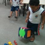 A professora Gislaine juntamente com seus alunos confeccionaram um jogo do trânsito muito divertido, o jogo consiste em lançar um dado com várias cores, dependendo a cor que cair o aluno movimenta um carrinho com a cor correspondente, os alunos se divertiram muito e rapidamente pegaram o jeito de jogo, além da diversão, nessa semana tão importante o tema trânsito vem sendo trabalhado e fomentado em nossos alunos, para torna-los cidadãos mais conscientes.
