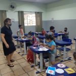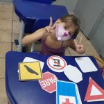 A ação contou com os alunos do 1º ano, junto a professora, na atividade foram desafiados a realizarem um pareamento de placas de trânsito  com o formatos geométricos , tem como o objetivo o desenvolvimento da coordenação motora fina, percepção visual, noção espacial e raciocínio e conhecimento de placas de trânsito.