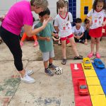Foi adaptado no jogo da (tartaruga) corrida dos carros, utilizando as regras de trânsito. Após jogar o dado, a criança tem que andar as casas correspondentes e depois tirar uma ficha de trânsito confeccionada pela professora com algumas regras, o objetivo é perceber se ele está dirigindo corretamente, assim em forma de brincadeira, passando as informações bem conscientes, pois no jogo quem não respeita as leis do trânsito não ganha. Fazer a criança um agente multiplicador e ensinar crianças o quanto antes sobre seus direitos, deveres e sobre as leis do trânsito, contribui para a formação de cidadãos mais conscientes e responsáveis, na vida e nas ruas, assim também se tornarão adultos responsáveis e com conhecimento das leis. Tornando-se assim, motoristas, pedestres, ciclistas e passageiros mais conscientes e cautelosos. Uma atividade prazerosa e muito divertida.