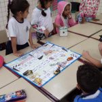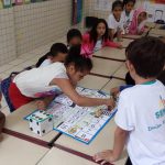Trabalhei junto aos alunos do 1º ano C, um jogo, criado por mim, chamado “Na trilha do trânsito seguro”, onde cada aluno joga, representando um dos personagens do trânsito (pedestre, motociclista, motorista, etc).