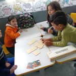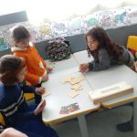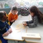 A professora Elaine trabalhou com seus alunos do 1º ano A o jogo: sequência lógica do trânsito. Conversaram sobre as regras e cuidados que todos devem ter no trânsito. Em seguida a professora apresentou o jogo para que pudessem brincar livremente. O brinquedo propõe atividades de sequência lógica que contribuem no desenvolvimento cognitivo das crianças, induzindo a organização do pensamento e das ideias. Foi uma diversão.