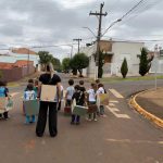NESSA ATIVIDADE, A PROPOSTA ERA FAZER COM QUE OBSERVASSEM E SEGUISSEM AS REGRAS DE TRÂNSITO AO REDOR DA NOSSA ESCOLA, LEMBRANDO DO QUE JÁ HAVÍAMOS CONVERSADO, UTILIZANDO OS CARROS PINTADOS POR ELES NA ATIVIDADE ANTERIOR.