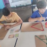 Durante o processo, as crianças trabalharam em grupo, planejando regras, elaborando perguntas e desenhando caminhos — tudo com muito empenho e entusiasmo. A atividade estimulou não só o raciocínio lógico e o trabalho em equipe, mas também a consciência ambiental, mostrando na prática como é possível dar um novo sentido ao que seria descartado.