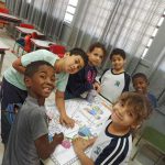 Os alunos participaram de uma atividade em grupos, na qual confeccionaram cartazes e desenvolveram jogos educativos relacionados às regras de trânsito. A dinâmica colaborativa permitiu que compartilhassem ideias, aplicassem os conceitos aprendidos e reforçassem a importância do respeito às normas de circulação de forma criativa e prática.