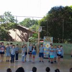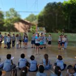 Ainda em ações do Maio Laranja, os alunos do 4º ano apresentaram a toda comunidade escolar o jogral “Regras do Trânsito do Corpo”, mostrando de maneira lúdica e explicativa os lugares do corpo que são ou não permitidos os toques.