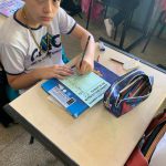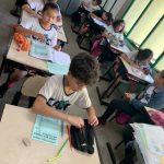 Os alunos individualmente, realizaram uma atividade, como se fosse uma notícia de jornal. Eles tiveram que completar as frases, pintar corretamente as lixeiras e fazer um desenho relacionado a conservação do Meio Ambiente.