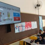 Os alunos assistiram o vídeo: Cuidando com o meio ambiente, da Turma da Mônica. Partindo do vídeo, fizemos uma roda de conversa sobre o assunto. Depois realizaram ilustrações das atitudes negativas e positivas. Utilizamos também jogos online: WORDWALL- sobre o meio ambiente- QUIZ. Também trabalhamos com o livro didático, as partes da plantas e o ciclo vital da planta, onde foi realizada a experiência da germinação do feijão.