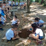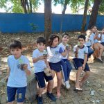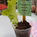Cada aluno plantou o seu e levou para casa para cuidar.
