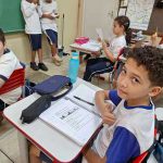 A professora iniciou o tema questionando aos alunos o que sabem sobre o meio ambiente.
