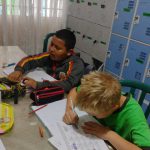 Em seguida, os alunos leram frases de ensinamento que Zé Quest apresenta, reforçando valores e boas atitudes no trânsito. Também realizaram uma atividade de ligar números e letras para completar um caça-palavras relacionado ao trânsito, estimulando a concentração e o raciocínio. Os alunos desenharam o personagem principal que desejaram e escreveram uma mensagem para ele .