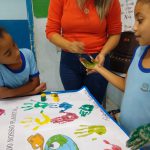 A Professora conversou de forma lúdica falou para as crianças sobre o tema da aula, fazendo assim o levantamento prévio, identificando assim o que pode se fazer para ter um mundo melhor.