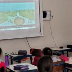 Esta aula teve início com o vídeo do projeto Viva Meio Ambiente “Lugar de Lixo é na reciclagem”, onde as crianças refletiram a importância de não jogar lixo nas vias públicas como forma de preservação da vida animal existente próximo a estes locais, e da importância do descarte correto para reciclagem.