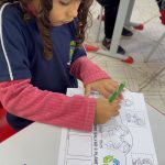 Nesta aula, os alunos do 1º ano B (manhã) e do 1º ano C (tarde) participaram de uma aula especial de pintura com o tema “Juntos Salvaremos o Planeta”. Durante a atividade, os alunos pintaram uma coroa que representava a preservação do meio ambiente.
