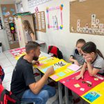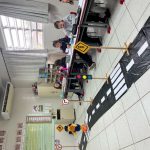 Ali fizeram história em quadrinhos, texto relatando o motorista que quer ser, livretos com explicações sobre placas de sinalização, jogo montando um trânsito, carteira de habilitação, simulação de trânsito.