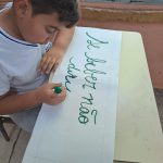 O projeto foi trabalhado em sala com o desenvolvimento de cartazes e posteriormente, os alunos foram visualizar e conscientizar os pedestres nas ruas da cidade. Os alunos elaboraram as frases com a ajuda da professora, sendo que muitos ainda não compreendiam a importância da sinalização de trânsito. As aulas de artes e língua portuguesa foram importantes para o desenvolvimento do projeto.
