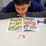 Os 12 estudantes do grupo D, com idades entre 9 e 10 anos, estudantes do período da manhã, se envolveram em uma atividade de leitura compartilhada da revista Zé Quest. Sob a supervisão da professora, cada aluno teve a chance de ler um trecho da revista, recebendo orientações e explicações para melhor compreender o conteúdo. Ao final da leitura, os alunos trocaram ideias sobre como relacionar o conteúdo da revista com a sua própria realidade local.