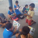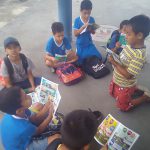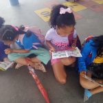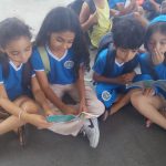 Ao ar livre, uma leitura compartilhada das unidades da revista Zé Quest. Cada aluno lê uma parcela da história. Ao final, unimos nossas ideias em relação a nossos deveres enquanto cidadãos atuantes e protetores do Meio Ambiente.