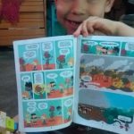 Leitura da revista do Zé Quest e montagem do Paper Toy em casa com à família.