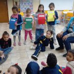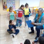 Após a leitura da história “Estamos por um fio?”, realizamos uma roda de conversa com a turma. Durante a conversa, discutimos o que podemos fazer para cuidar melhor do planeta e a importância da reciclagem.