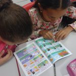 Hoje as crianças leram em duplas , a revista em quadrinhos .