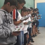 Na aula de Língua Portuguesa, trabalhamos com o Gênero Textual História em Quadrinhos e aproveitando o gibi do projeto, os alunos escolheram quais personagens gostaria de representar durante a leitura Dramatizada, cada um fez a voz de um personagem dando vida assim, as histórias lidas tiveram mais ênfases e os personagens ganharam vida.