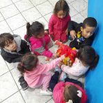 A aula teve início com uma roda de conversa sobre a poluição dos rios, promovendo a reflexão entre as crianças. A professora apresentou alguns resíduos sólidos (lixos) como exemplos de poluentes comuns. Em seguida, disponibilizou uma pintura representando um rio, junto com peixinhos e embalagens diversas, simulando um rio poluído. Após a observação, a professora questionou os alunos sobre possíveis formas de manter o rio limpo. Como atividade prática, as crianças participaram simbolicamente da ‘limpeza do rio’, retirando as embalagens que representavam a poluição. A proposta incentivou a conscientização ambiental e o senso de responsabilidade coletiva desde a infância.