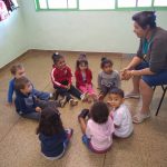 No primeiro momento, reuniu sua turminha em roda e conversou com eles que a árvore é muito linda e ela nos traz muitos benefícios.