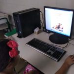 Após a leitura da história em quadrinhos, fomos até a sala de informática para leitura e visualização de um livro digitalizado com uma história da personagem Chapeuzinho Vermelho no trânsito. Em seguida, fizemos uma roda de conversa para socialização e discussão da história.