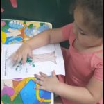 Realizamos um livro do meio ambiente, voltado para pinturas realizadas com as mãos das crianças, fizemos rodas de conversas sobre o tema e cada criança realizou seu livro em casa. Foram produzidos utilizando as mãos um leão, flores, borboletas, peixes além de uma pintura do nosso planeta Terra utilizando pincéis e tintas guache, foi uma atividade muito produtiva, realizada com bastante empenho pelas crianças e suas famílias. O retorno foi grande abrangendo toda a turma do pré 1 A.