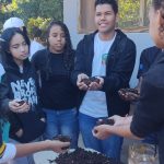 Durante a visita no Horto Florestal de Bento Quirino, São Simão- SP, os alunos aprenderam a produzir compostagem através de restos de frutas, verduras e legumes.