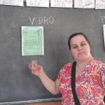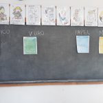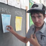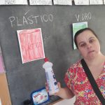 A professora juntou vários lixos e os alunos tinham que colocá-los no lixeiro correspondente.