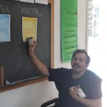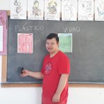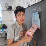 A turma realizou uma atividade sobre separação de lixos. Primeiramente alguns alunos pintaram os lixeiros desenhados num papel: vermelho, verde, azul e amarelo. em seguida, a professora explicou sobre a importância da separação dos lixos, reciclagem e quais são os lixos que correspondem a cada cor de lixeiro: Vermelho – plástico; Verde – vidro; Azul- papel; Amarelo: metal.