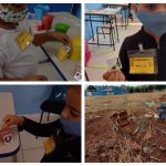 Texto: Nos arredores da escola existem muitas construções e os entulhos que continuam sendo descartados incorretamente sendo colocados nas calçadas, terrenos vazios, na rua, nos canteiros e alguns moradores aproveitam para descartar outros objetos. Realizamos atividade em sala de aula, separando o lixo em cada lixeira corretamente conforme as fichas apresentadas. Enfatizando que as crianças podem ajudar a separar em casa o lixo reciclado e colocar no dia correto que o caminhão da reciclagem para recolher.