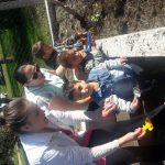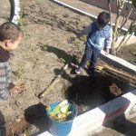 Aula passeio na horta da escola , ensinando a importância de enterrar o lixo orgânico, com os alunos da Educação Infantil. O projeto tem por objetivo auxiliar os alunos na compreensão da produção e utilização do lixo orgânico.